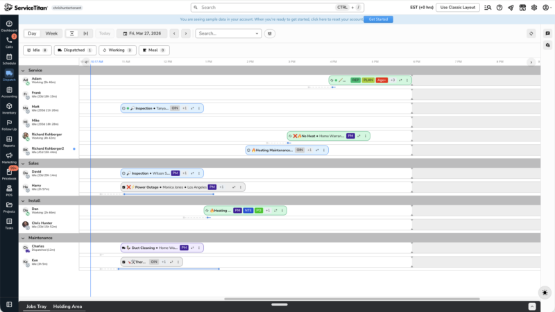Master the ServiceTitan dispatch board — job status colors, the jobs tray, filters, and alerts. Everything dispatchers need to run a tighter operation.